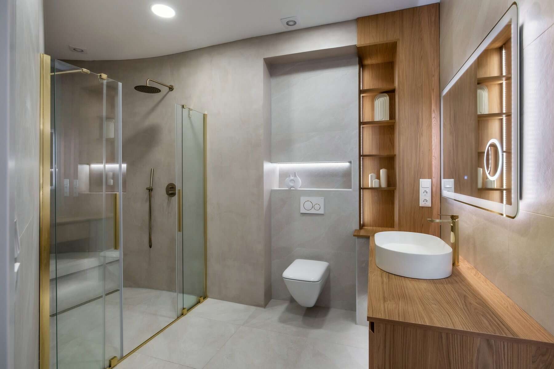 A fürdőszobákban kizárólag Laufen és Rea szaniterek kerültek beépítésre, melyek a letisztult formavilágot ötvözik a kiváló minőséggel. A modern design és az időtálló anyaghasználat minden részletben visszaköszön.
